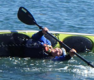 No lessons nothing, straight to the water. Safety, what safety? Yes we knew a life jacket is needed, had a paddle float and spray skirt. Bean went into the water on east Beach in White Rock. Scared stiff of drowning, (she is a good swimmer) she paddled around in the shallow depths of Semiahmoo bay. Getting braver she sees something out in the Bay, Bean decides to go out an see what that thing is way out in the water. Off she goes to paddle out into the Bay. As she gets closer she realizes it is a kid wading up to their knees in the shallows of the Bay. Who knew it was only that deep way out here. So Bean keeps her brave face on and paddles on some more. One day while paddling in the Bay, always looking down to make sure she can see bottom and not going too deep, (fear of Dying) she sees something move in the water. It scares the crap out of her and now she races out to deeper water so she cannot see anything that actually lives in the water. Now there is a dilemma. how do you get close to shore without seeing things in the water. That went on for a while.